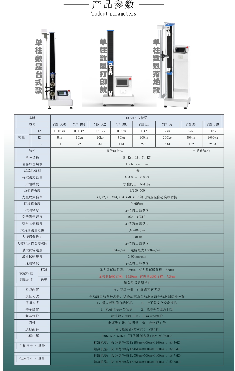 選購:無夾具試驗行程:1320mm;有夾具試驗行程:720mm;細分型號后綴帶H。